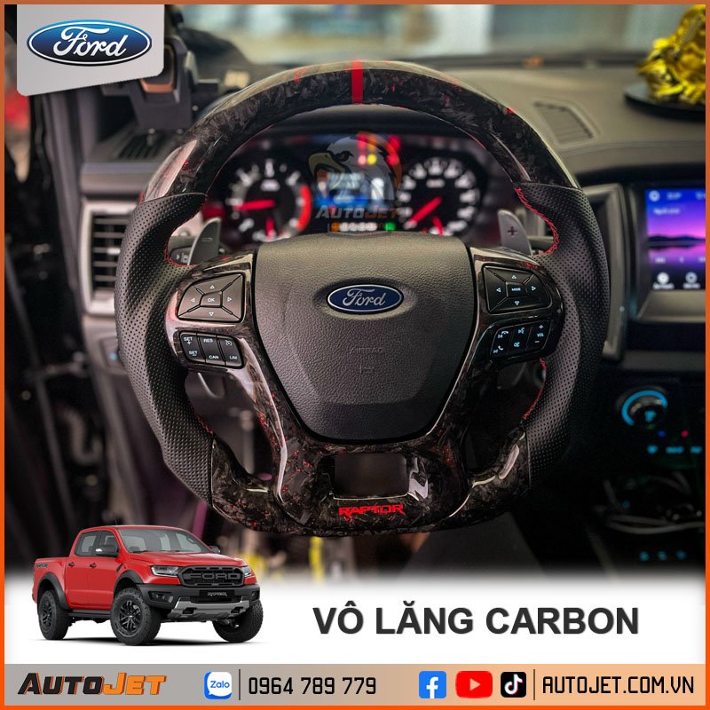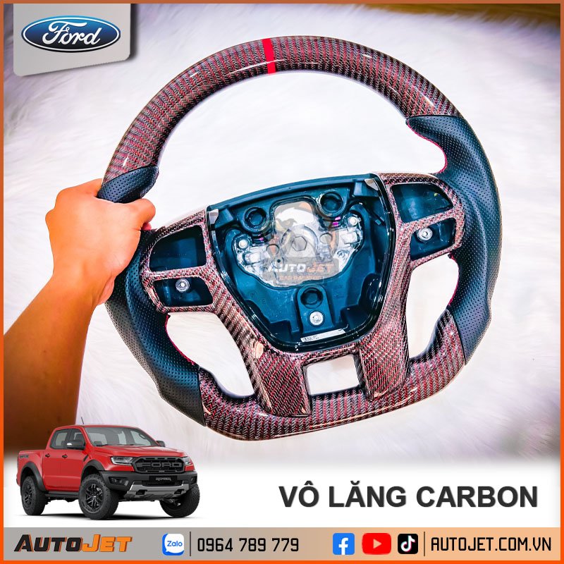 Dòng Sản phẩm Vô lăng bọc 100% Fiber Carbon, sợi Kevlar Carbon được sử dụng trong quân đội Hoa Kỳ với độ bền và thiết kế tinh xảo sẽ là sự lựa chọn hoàn hảo dành cho Ford Everest, Ranger Wildtrak (2016-2022)